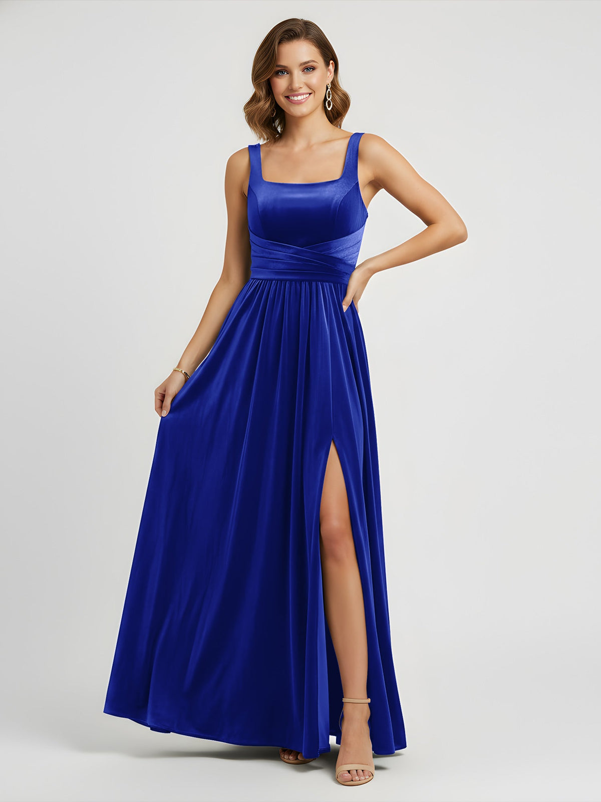 ❀.Silhouette: Flowy A-Line Maxi Dress with elegant high side slit and floor-sweeping hem