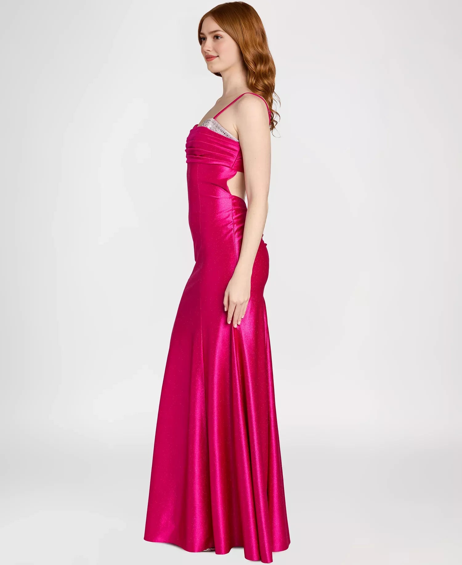 Sparkling Mermaid Spaghetti Neck Satin Floor Length Cutout Rhinestone Prom Dress